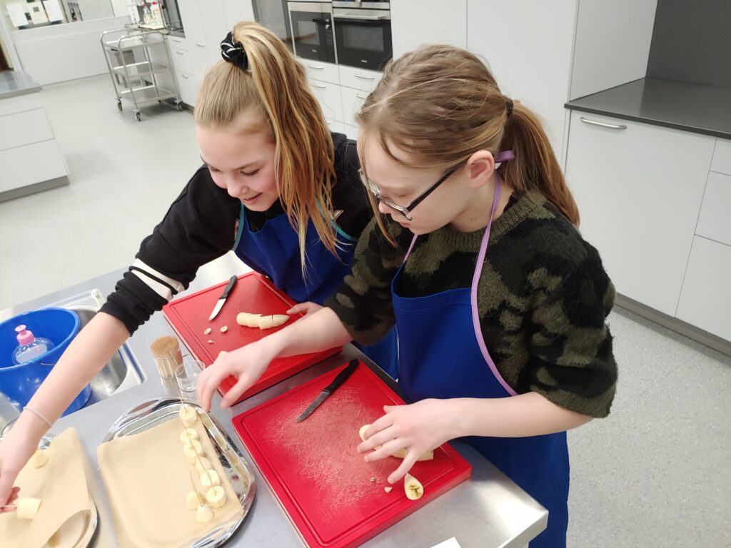 In Klasse 7 unterrichten wir in kleinen Lerngruppen Hauswirtschaft. Dort lernen die Schülerinnen und Schüler, gesunde und leckere Speisen zuzubereiten.